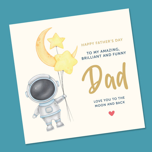 Cute Fathers Day card, Birthday card for Dad - Fathers Day Card - Love you to the moon and back, Personalised dad birthday Card