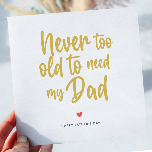 Never too old to need my dad - Fathers day Card - Personalised Card Father's Day, Father's Day Gift, Son, Daughter